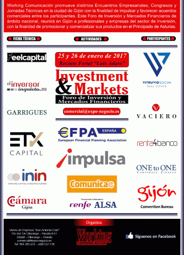 Foro de ámbito nacional que reunirá en Gijón a profesionales y empresas del sector de Inversión.